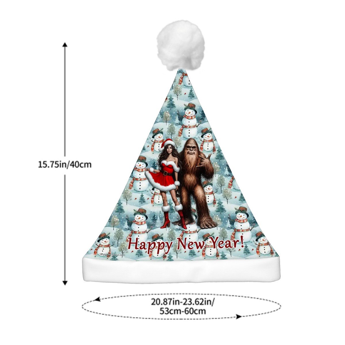 Sasquatch w/ Sexy Lady, Adult Plush Santa Hat with Light