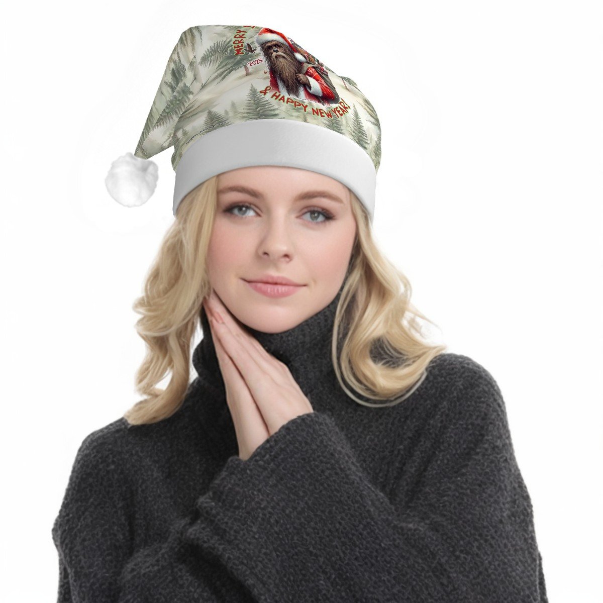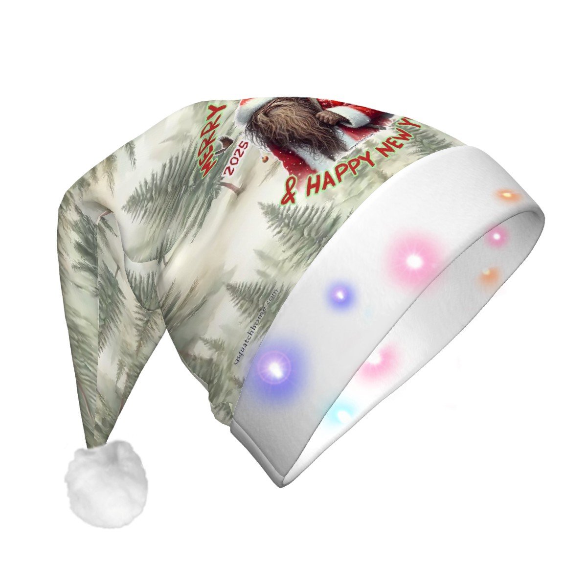 Sasquatch Bigfoot "Merry Squatchmas", Adult Plush Santa Hat with Light