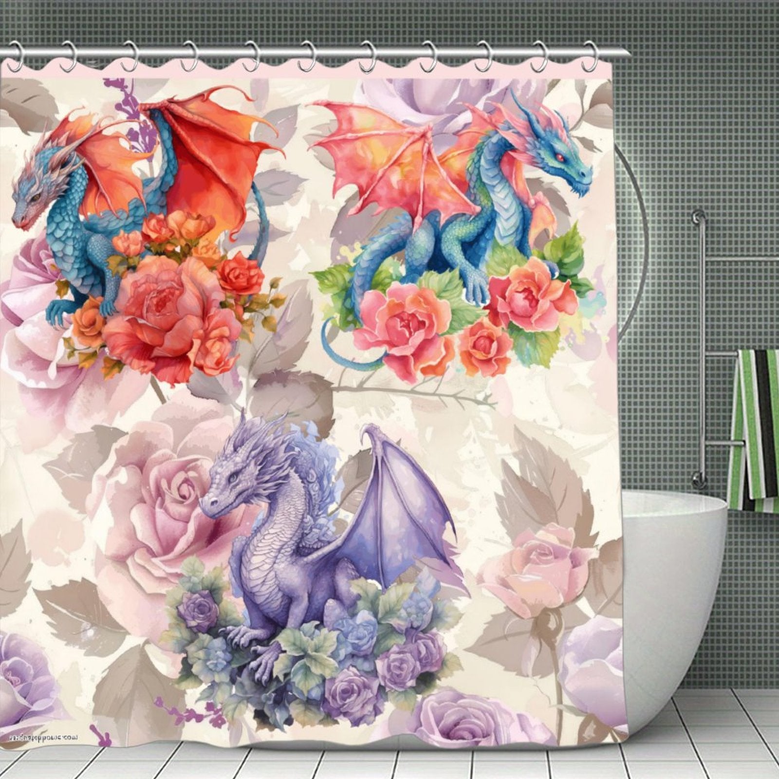Dragon Fantasy Waterproof Shower Curtain