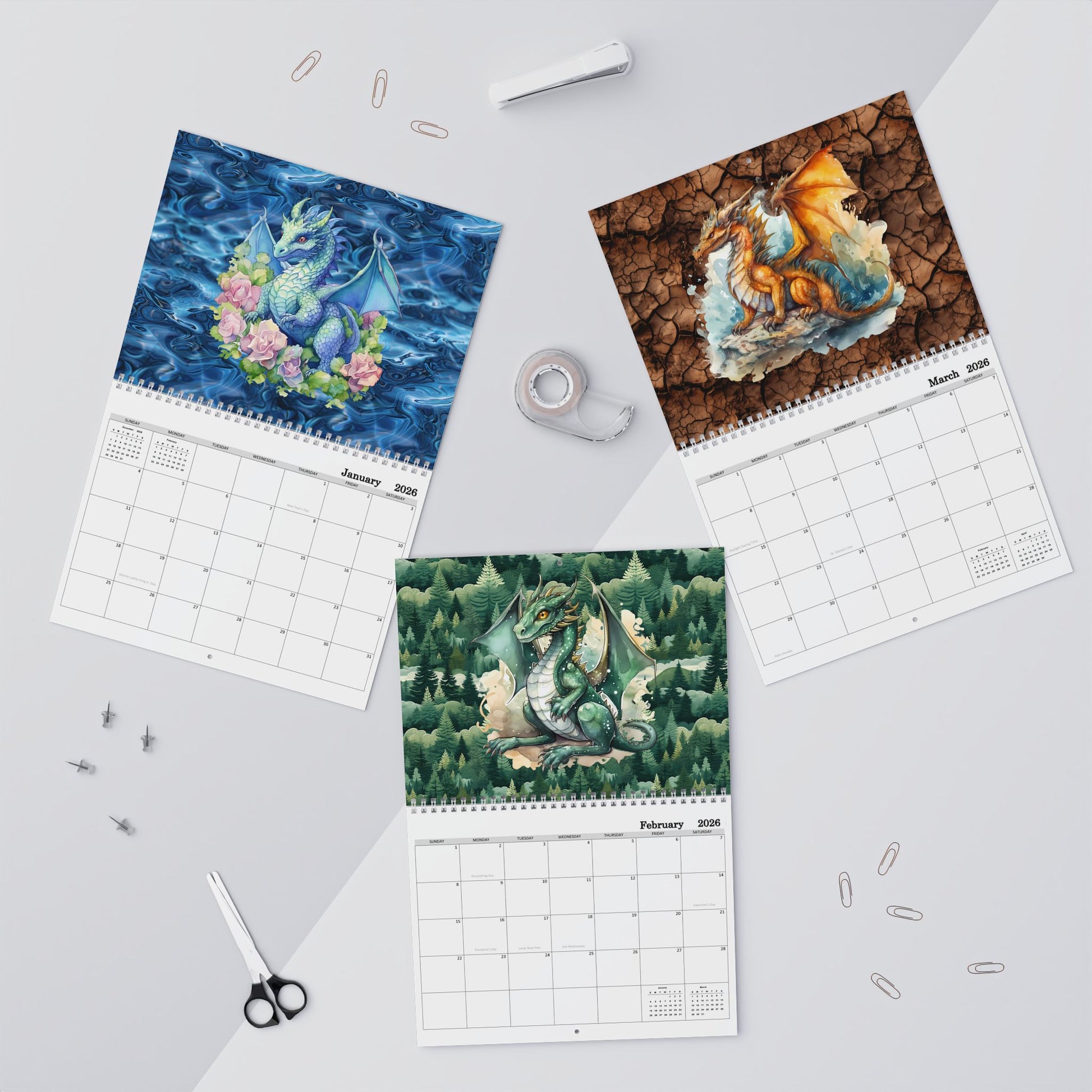 Dragons, 2026 8x11 inch Wall Calendar Personalize As Gift Home Decor, Gift for Holidays, Office Organization