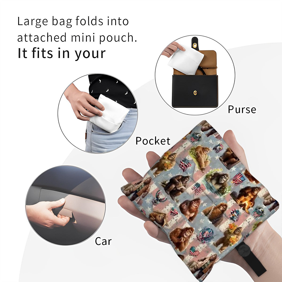 19 Bigfoot / Sasquatch Designs, Reusable, Folding Grocery Bags -