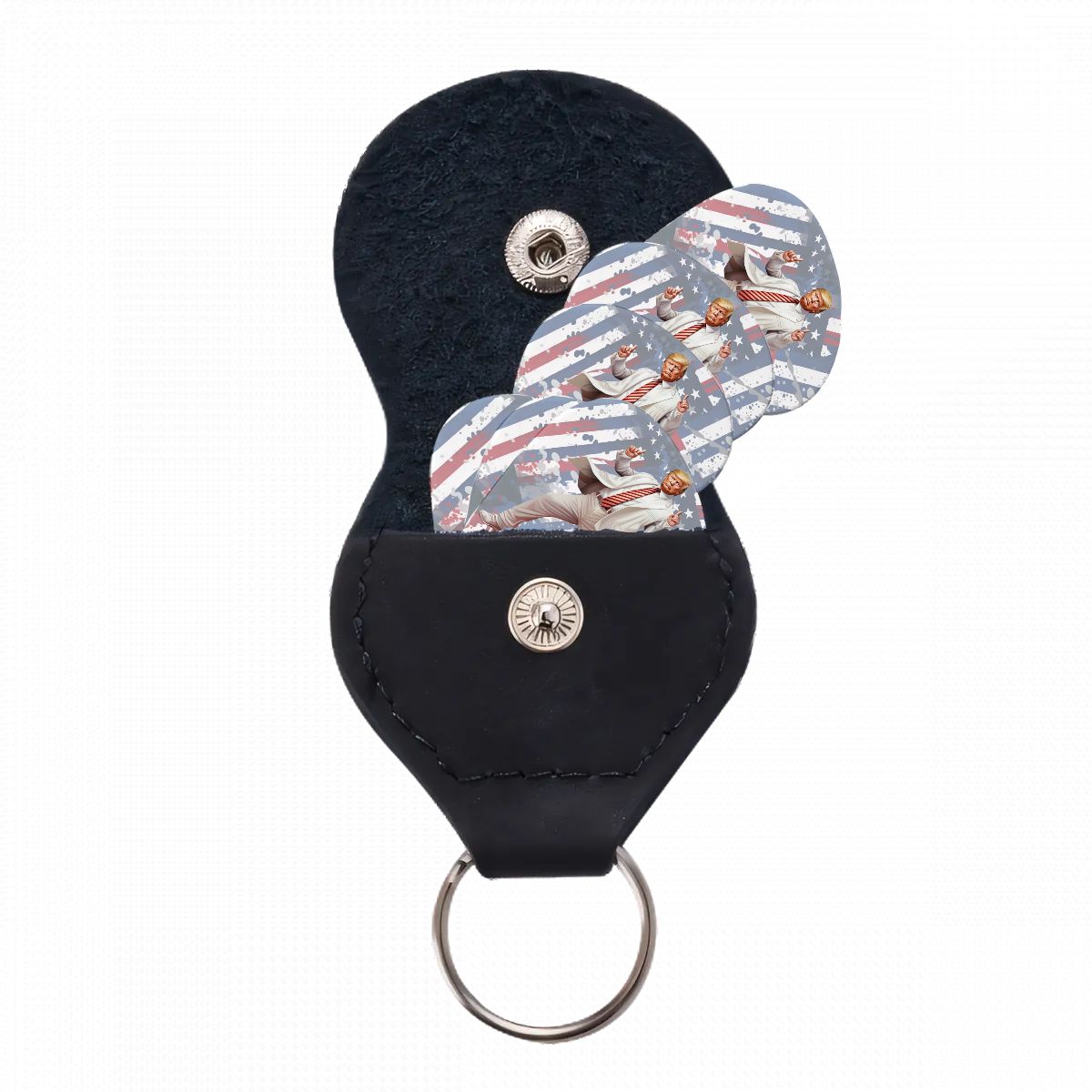 6 Guitar Picks with Keychain Snap Case- Dancing Donald Trump – 3 Thicknesses