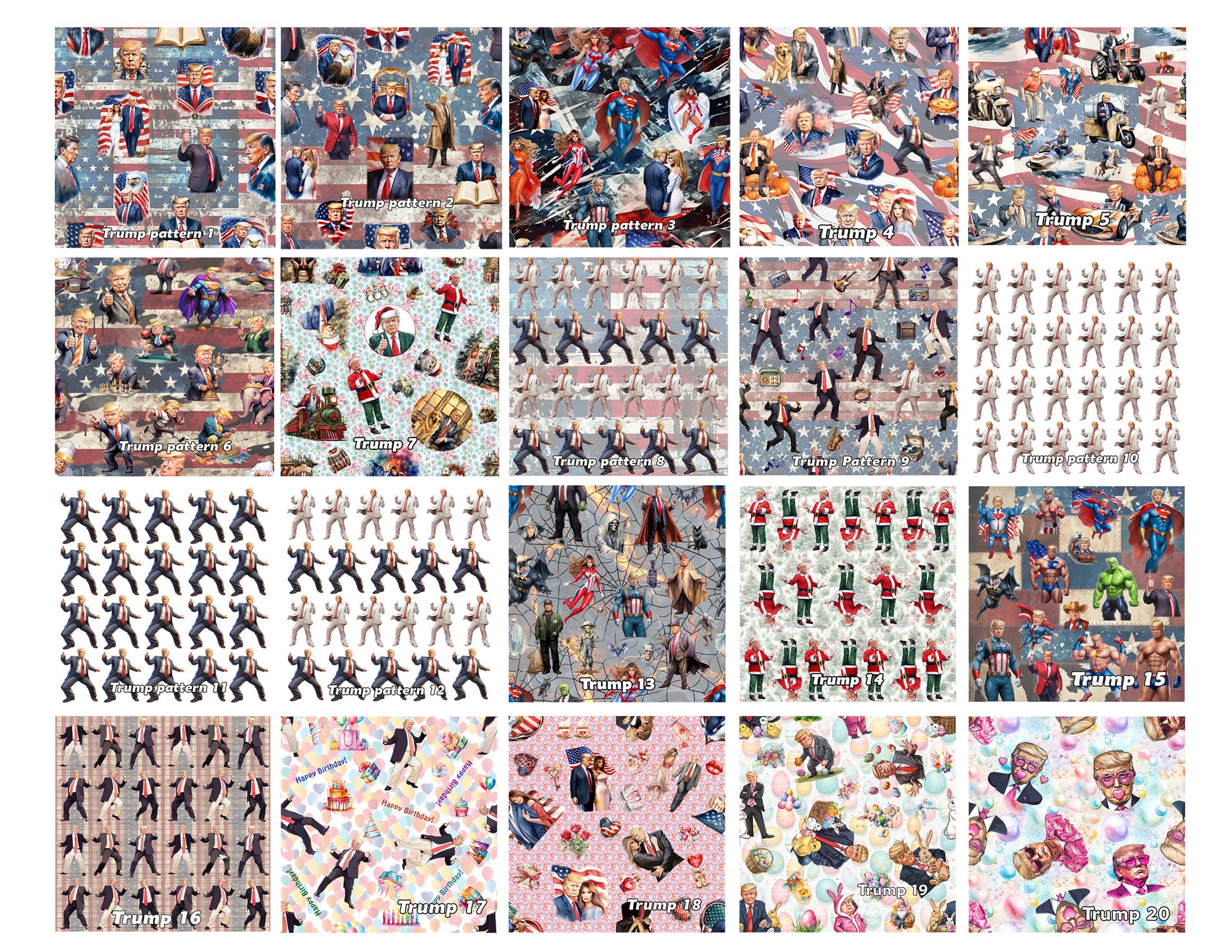 6 Guitar Picks with Keychain Snap Case - 20 Donald Trump Designs – 3 Thicknesses