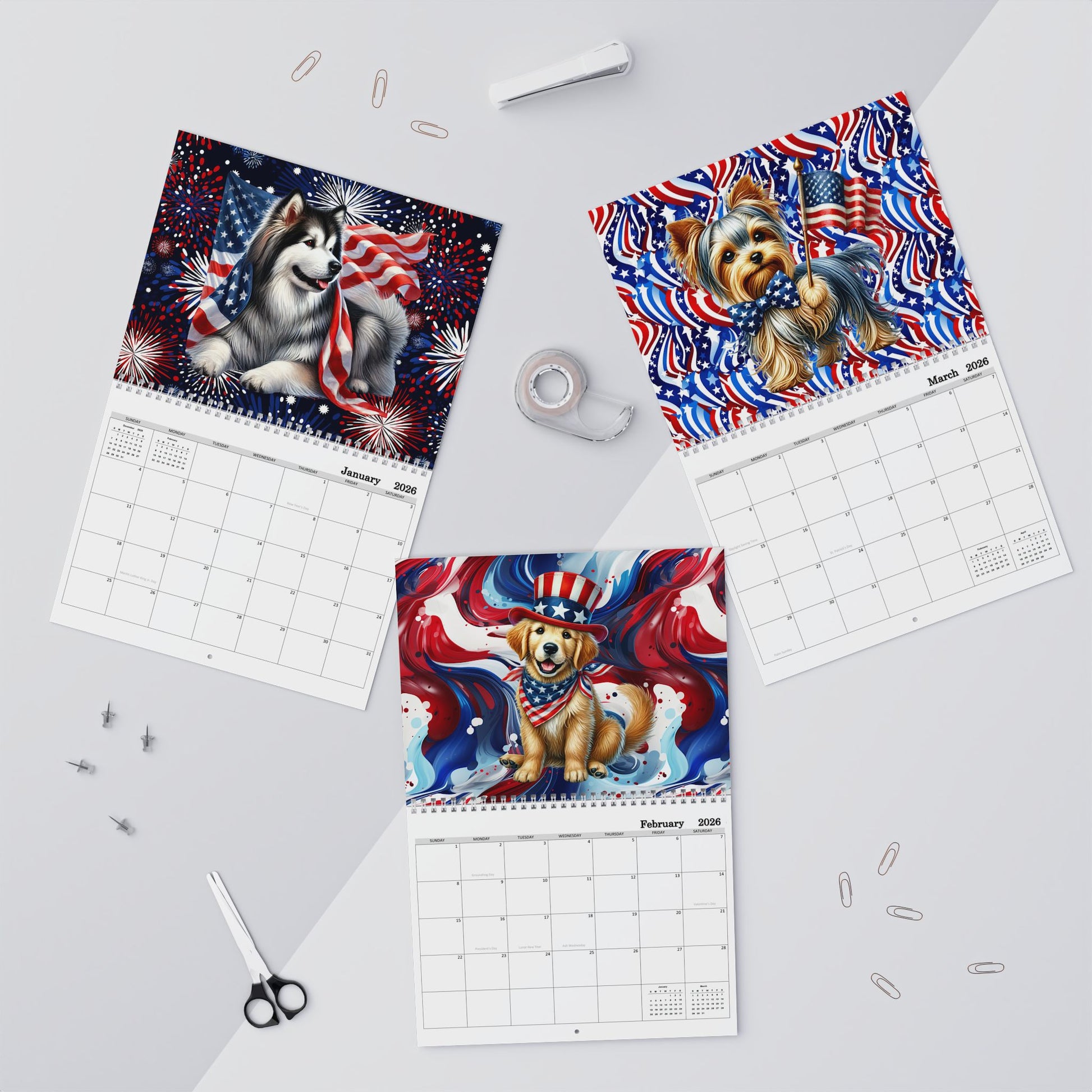 Patriotic Dog 8x11 inch Wall Calendar - American Flag Theme, 2024 Planner for Dog Lovers, Home Decor, Gift for Holidays, Office Organization