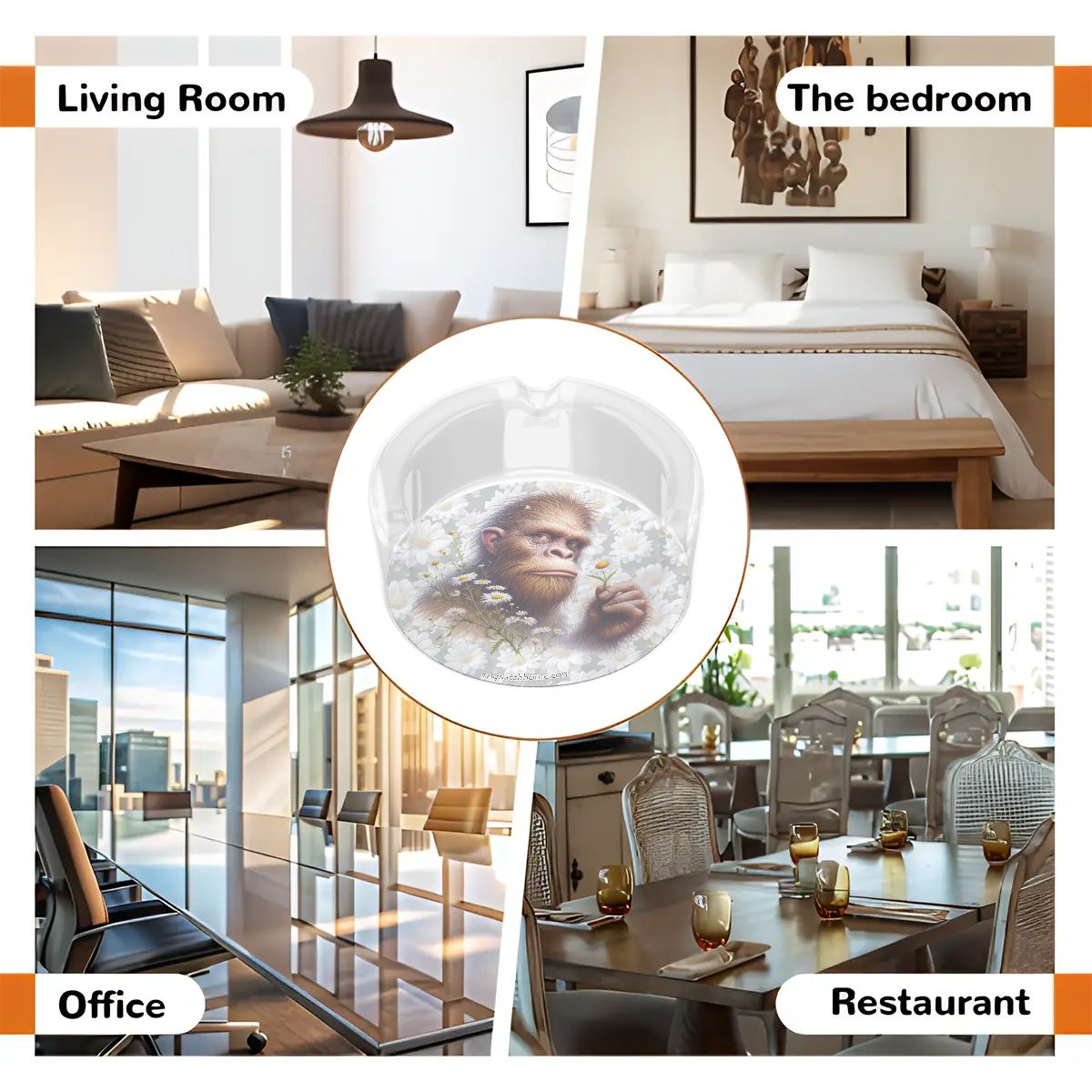 3 .3" Round, Lead Free Glass Ashtray - Sasquatch, Bigfoot, Daisies