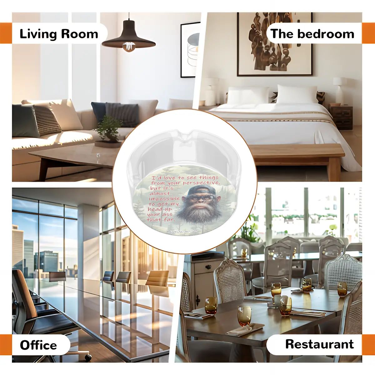 3 .3" Round, Lead Free Glass Ashtray - Bigfoot, Sasquatch "I'd like to..."