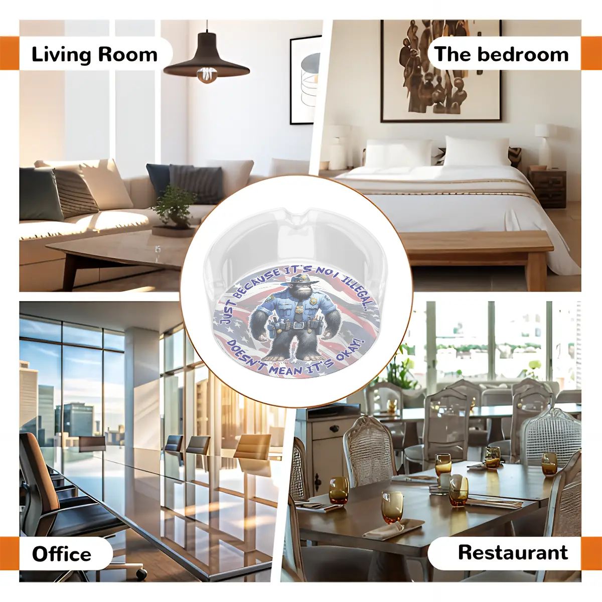 3 .3" Round, Lead Free Glass Ashtray - Bigfoot Sasquatch Cop, "Just because it's...."