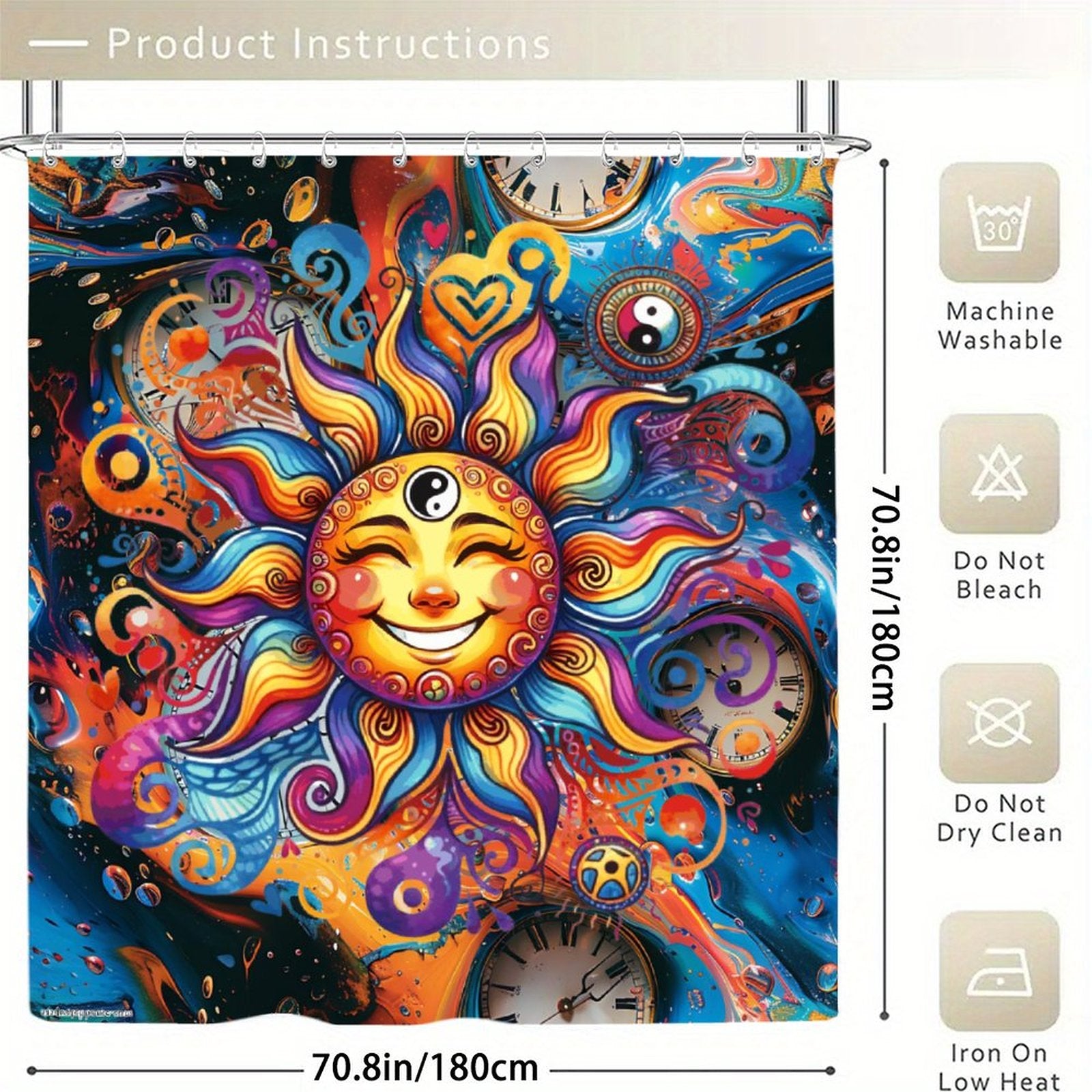 Happy Rainbow Sunshine Waterproof Polyester Shower Curtain – Made in the USA – 70.8x70.8”